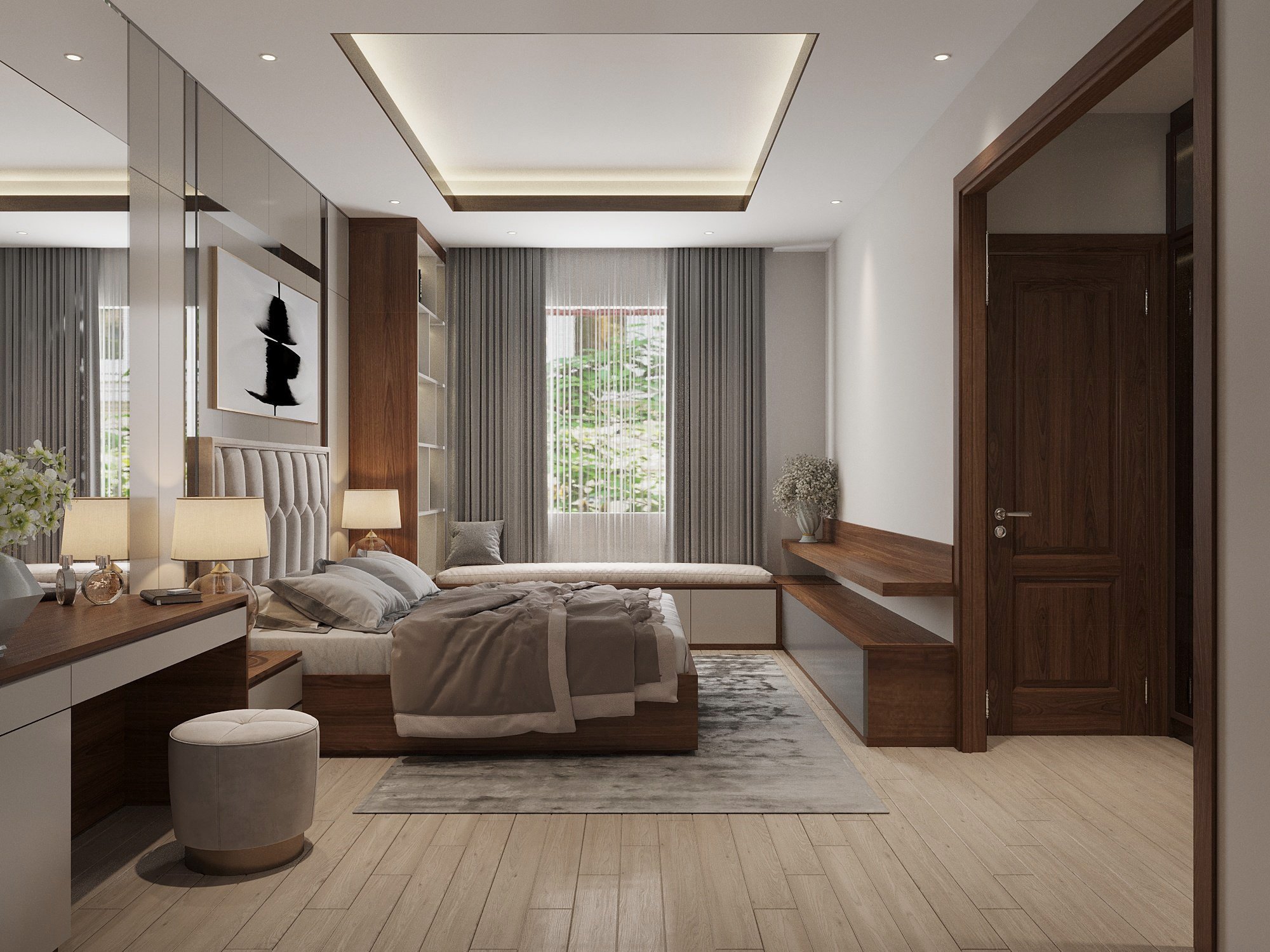 Các phòng ngủ được thiết kế hiện đại, mỗi phòng mang một tông màu riêng biệt, phù hợp với cá tính và nhu cầu của từng thành viên trong gia đình. Mọi không gian đều được bố trí khoa học, tận dụng ánh sáng tự nhiên và trang bị đầy đủ tiện nghi, tạo nên tổng thể đẳng cấp – tiện nghi – hài hòa.