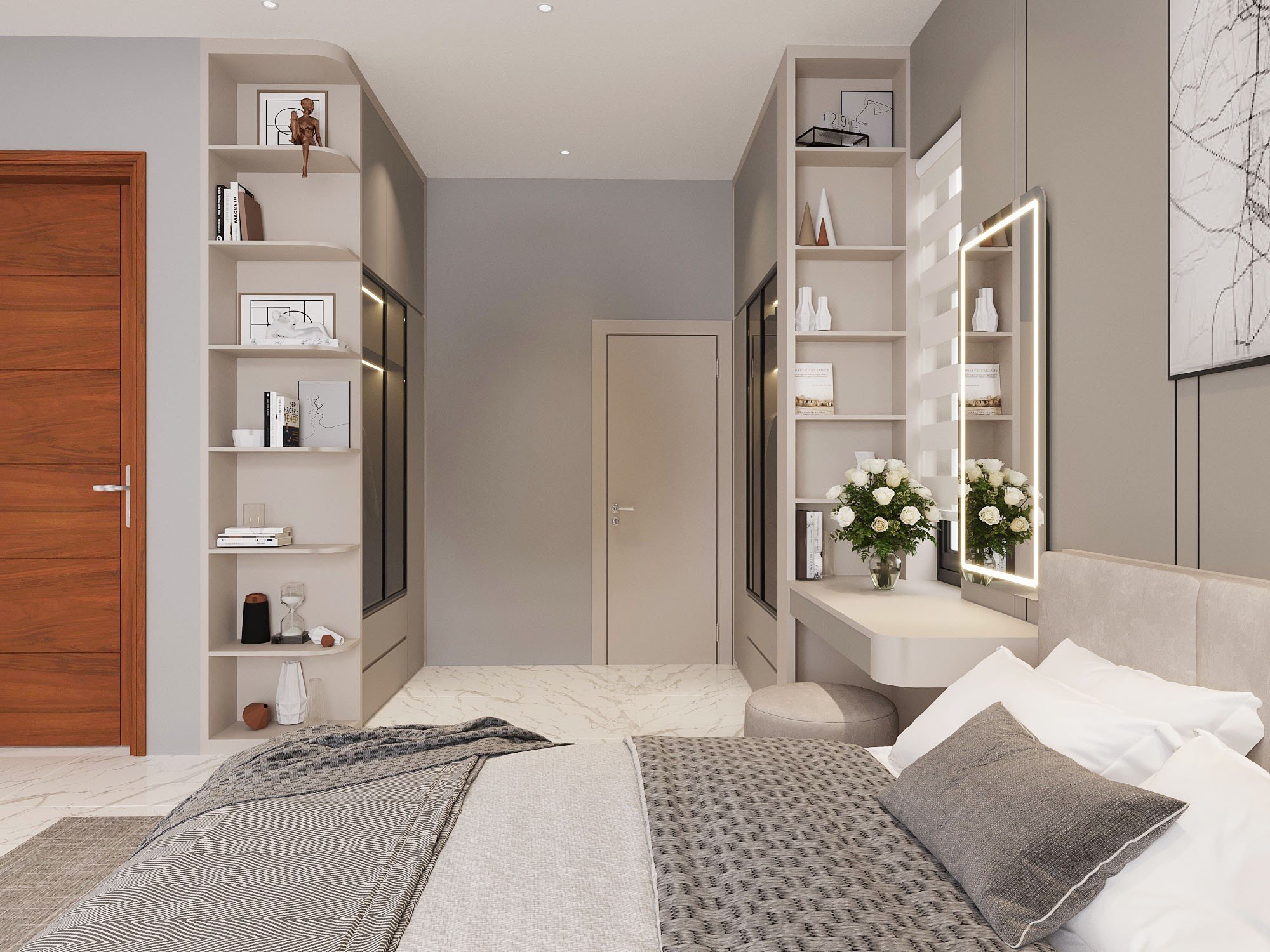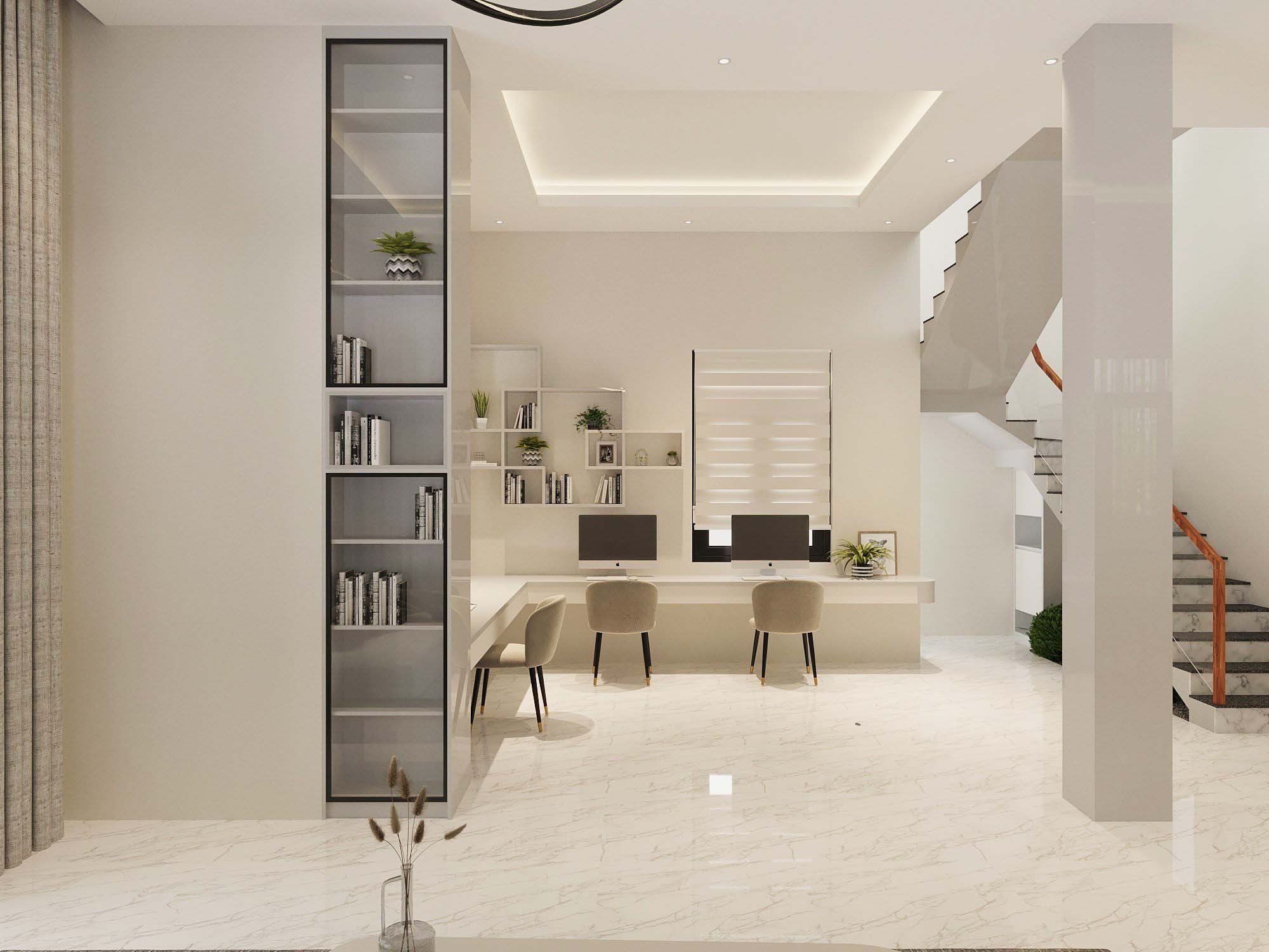 Dự án thiết kế nội thất nhà phố 2 tầng là một trong những công trình tiêu biểu mà Homy Decor thực hiện. Với tông màu chủ đạo kem – xám – trắng, tạo nên không gian nhẹ nhàng, thanh lịch mà vẫn toát nên nét hiện đại và sang trọng.