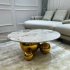Bàn trà BTI-10 có đường kính từ 70cm đến 90cm, chiều cao 45cm, phù hợp với nhiều không gian từ phòng khách nhỏ đến phòng khách lớn. Thiết kế tinh tế với chân inox mạ vàng, mặt đá ceramic, tạo nên một sản phẩm vừa chắc chắn vừa sang trọng.